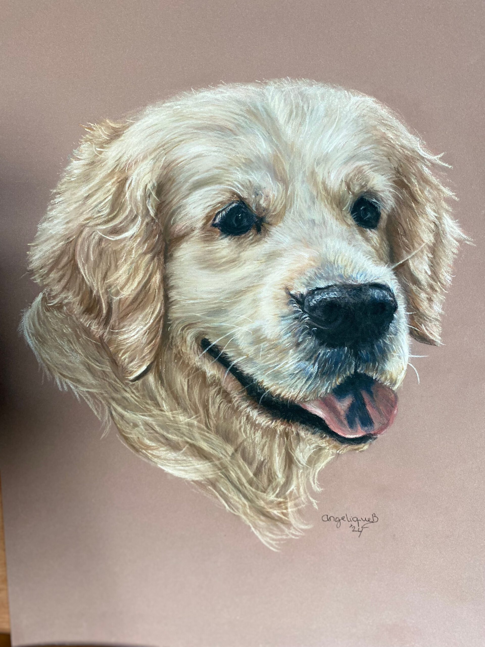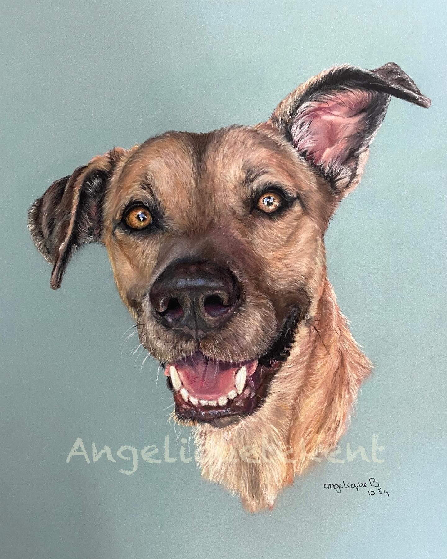 Ik maak in opdracht portretten van dieren en mensen. Hiervoor maak ik gebruik van pastelkrijt op pastelmat. Voor meer informatie wil ik je verwijzen naar mijn website Tarieven – Angelique’s Fantasiefabriek